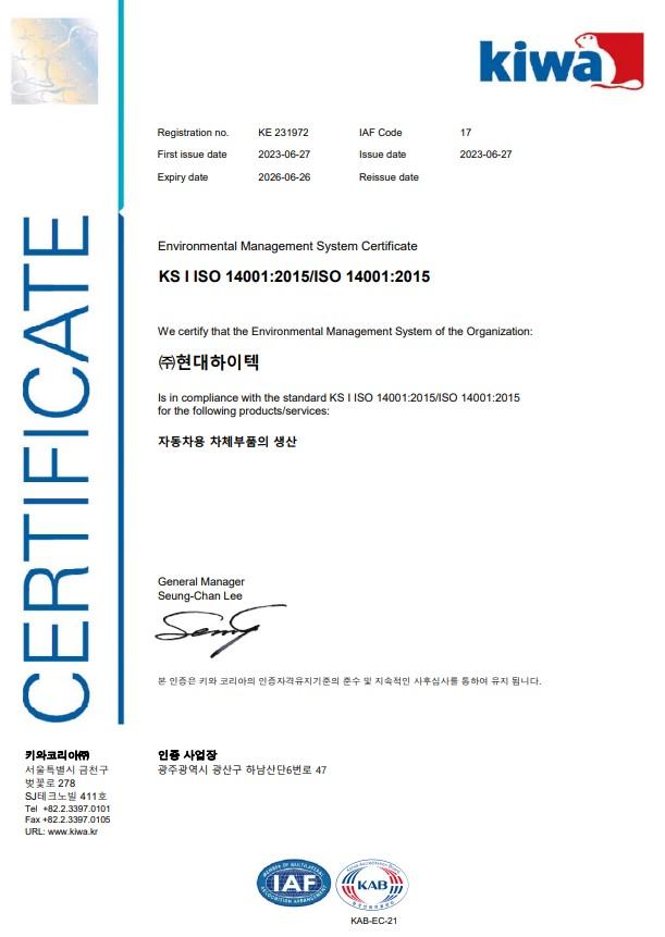환경경영시스템 인증서