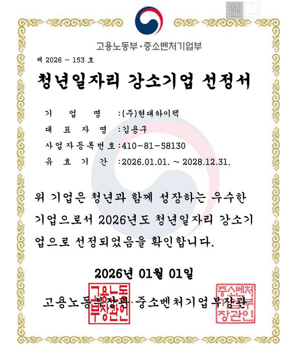 2026년 청년일자리 강소기업 선정서